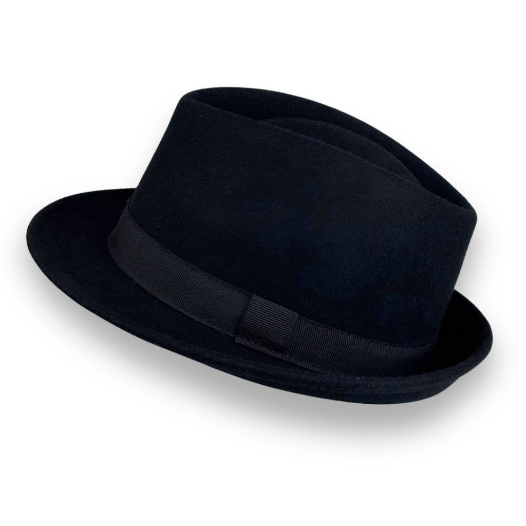 Klasický Trilby černý klobouk z prvotřídní vlny, ručně vyrobený v Itálii, představuje spojení tradičního řemesla a moderního stylu. Díky kvalitnímu materiálu si zachovává svůj tvar, je příjemný na nošení a vhodný pro celoroční využití.