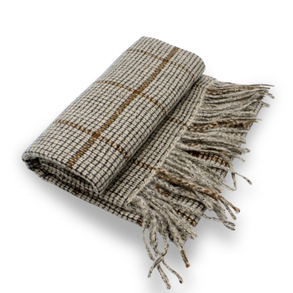 Stylová zimní šála s kostkovaným vzorem v decentní světle béžové - taupe která perfektně doplní váš podzimní i zimní outfit. Tato šála je vyrobena z měkkého materiálu s jemným kašmírovým omakem, který poskytuje maximální komfort a hřejivost bez nutnosti použití pravého kašmíru.