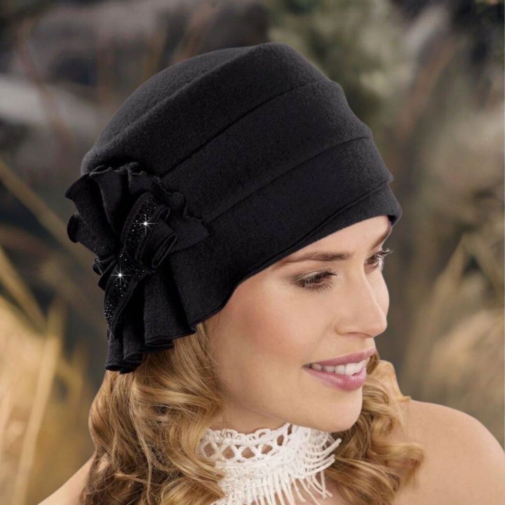 Dámská zimní černá vlněná čepice s černou ozdobou a kamínky uprostřed je elegantní a stylový doplněk, který nejenže zahřeje, ale také přidá šmrnc každému zimnímu outfitu. Vlněný materiál poskytuje vynikající teplo a pohodlí, což je ideální pro chladné zimní dny. Černá barva je univerzální a snadno se kombinuje s různými barvami oblečení. Ozdoba s kamínky uprostřed přidává čepici jemný lesk a sofistikovaný vzhled, který ji činí vhodnou i pro formálnější příležitosti. Tato čepice je perfektní volbou pro ženy, které hledají praktickou, ale zároveň módní ochranu před zimním počasím.