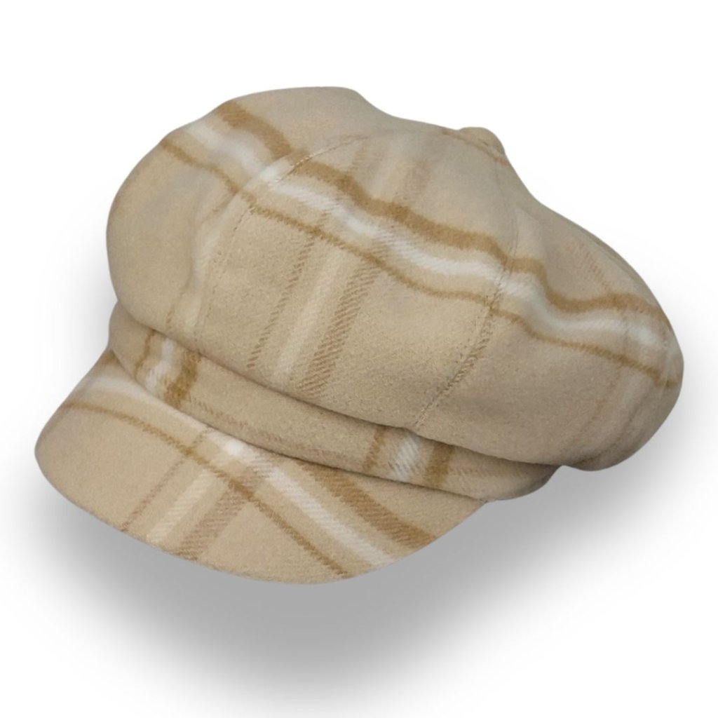 Krumlovanka Dámská podzimní čepice s kšiltem – 8 -dílná bekovka - béžová károvaná Me-B40