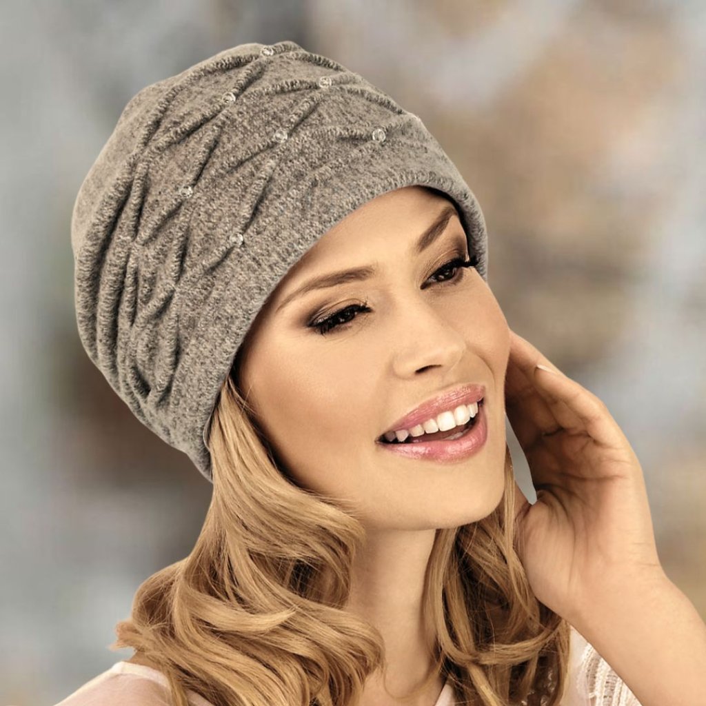 Působivá zimní vlněná béžová melanž čepice vyrobená z nejkvalitnější 100% vlny je ozdobená jemnými kamínky tónu v tónu, které spolu s propracovaným módním vrstvením vytváří originální charakter čepice. Skvělý střih čepice, který dobře sedí podtrhuje krásná béžová melange barva, kterou lehce doladíte k jakékoli další barvě Vašeho outfitu. Tepelný komfort v mrazivém počasí zaručí 100% vlna a měkoučká flísová podšívka.