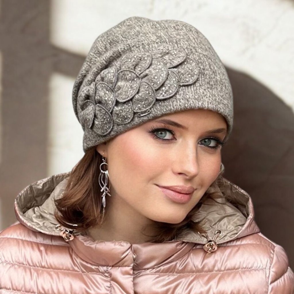 Béžová melanž vlněná čepice ze 100% české vlny se značku Woolmark Quality. Díky kvalitním materiálům tento kousek perfektně doplní nejen váš kabátek, ale zahřeje vás i na horách a skvěle doladí váš volnočasový outfit. čepice je ozdobená překládanými plátky s kamínky. Naše zimní čepice jsou zárukou, že Vás skvěle zahřejí a zároveň Vám budou slušet.