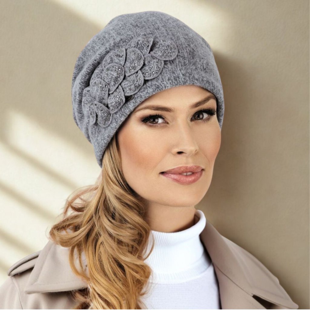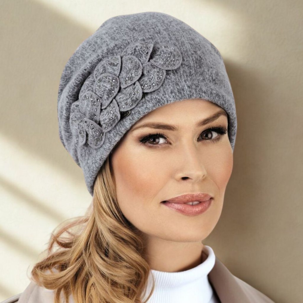 Šedomodrá melanž vlněná čepice ze 100% české vlny se značku Woolmark Quality Díky kvalitním materiálům tento kousek perfektně doplní nejen váš kabátek, ale zahřeje vás i na horách a skvěle doladí váš volnočasový outfit. čepice je ozdobená překládanými plátky s kamínky. Naše zimní čepice jsou zárukou, že Vás skvěle zahřejí a zároveň Vám budou slušet.