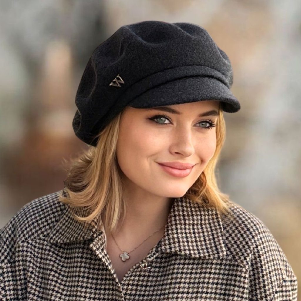 Trendy zimní dámský antracitový baret s kšiltem. Čepice je vyrobená z nejkvalitnější hřejivé a měkké 100% vlny Woolmark, která se dokonale přizpůsobí každé velikosti hlavy. Jedinečný charakter baretu dodává moderní vzhled.