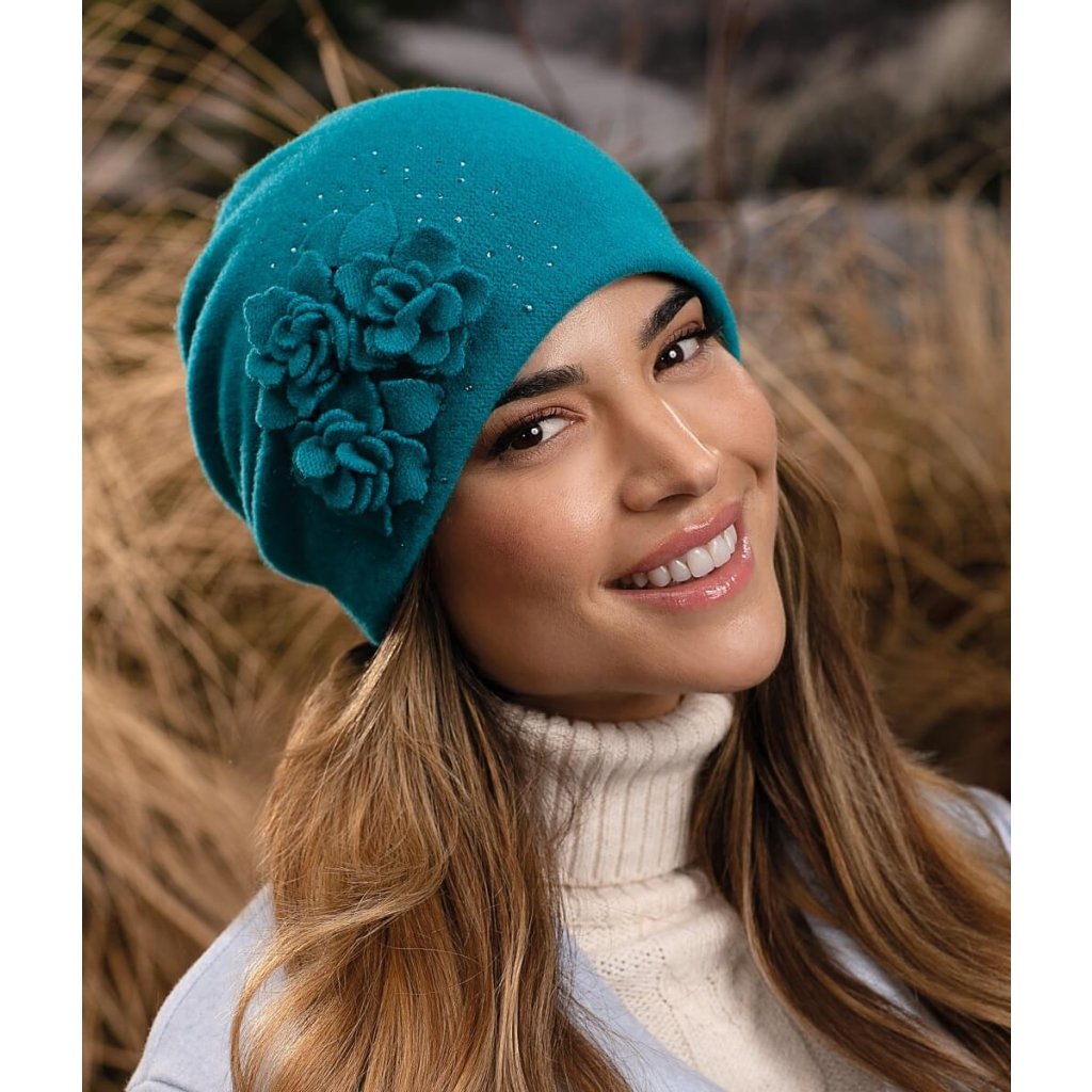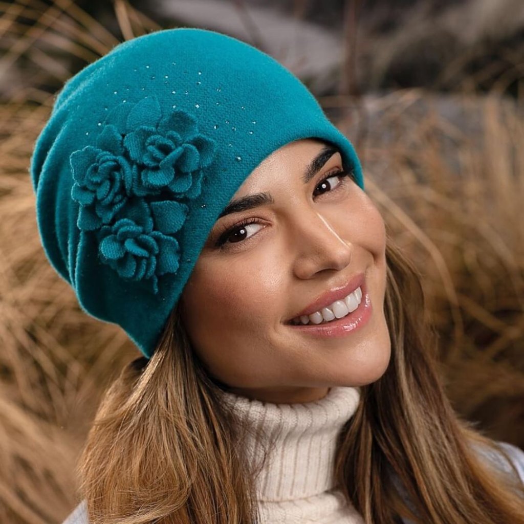 Dámská zimní tyrkysová čepice z certifikované vlny české výroby je zdobená ručně vlněnými květy tón v tónu. Květy jsou výsledkem ruční práce. Vlněná čepice má skvělý propracovaný střih a je pohodlná. Vlna je velmi měkká, díky čemuž se výrobek dokonale přizpůsobí velikosti hlavy.