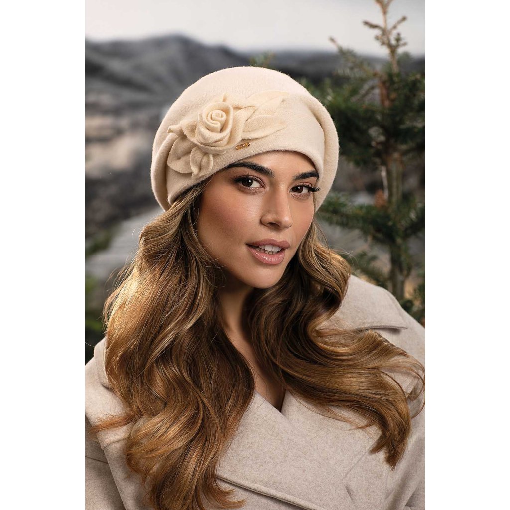 Krémově smetanová vlněná čepice ze 100% české vlny se značku Woolmark Quality je ušitá v moderním baretovém spadlém střihu, který je velmi slušivý a pohodlný. Vlněný baret s lemem je ručně ozdoben aplikací květů v barvě vlny. Díky kvalitním materiálům tento kousek perfektně doplní nejen váš kabátek, ale doladí i váš volnočasový outfit.
