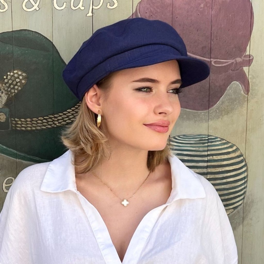 Letní kšiltová čepice - kapitánka v tmavě džínové modré barvě je precizně ušitá z kvalitní italské 100% lněné látky. Má skvělý pohodlný střih a podšívku z prodyšné síťoviny. Kšiltovka má vzadu všitou vnitřní skrytou pruženku pro snadnou regulaci velikosti. Lehoučká a vzdušná čepice s kšiltem je skvělým doplňkem v letních měsících. Díky pružence je čepice pružná a přizpůsobí se pohodlně tvaru i velkosti hlavy.
