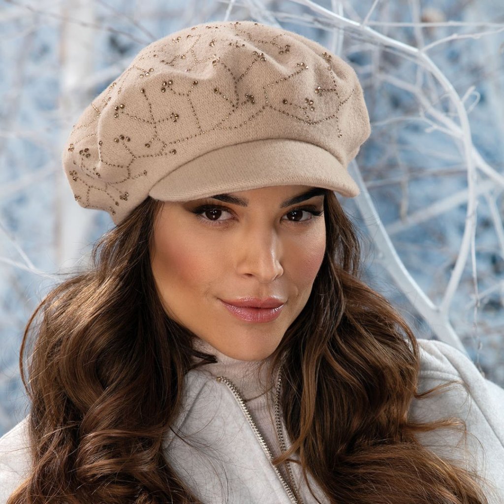 Elegantní dámská zimní čepice s kšiltem je vyrobena ze 100% české vlny nesoucí prestižní označení kvality Woolmark, které garantuje vysoký standard zpracování i materiálu. Tato stylová čepice je zdobena jemnou aplikací z kamínků tón v tónu, které jí dodávají decentní, ale luxusní vzhled.