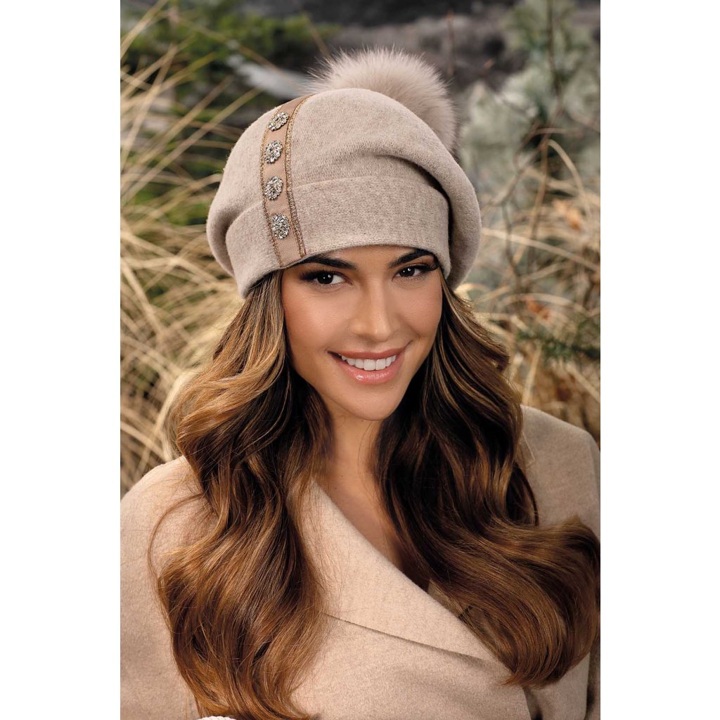 Béžová melanž vlněná čepice s bambulí ze 100% české vlny se značku Woolmark Quality je ušitá v moderním baretovém spadlém střihu, který je velmi slušivý a pohodlný. Dámský baret je ručně ozdoben vertikální stuhou na které se vyjímají luxusní knoflíkové mandaly ze zirkonů. Díky kvalitním materiálům tento kousek perfektně doplní nejen váš kabátek, ale doladí i váš volnočasový outfit.