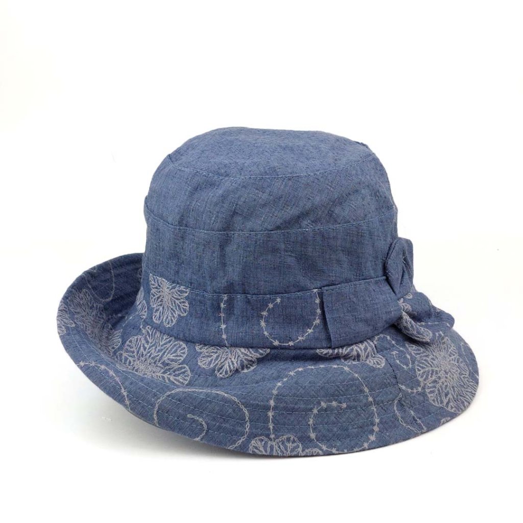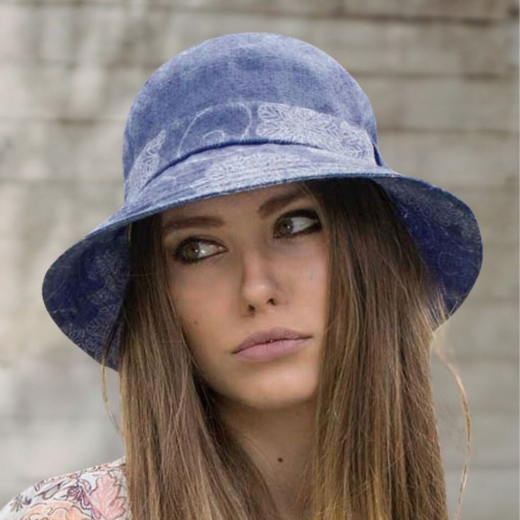 Dámský modrý látkový klobouček s nádherným bílým jemným květinovým vzorem a elegantní mašlí představuje ideální letní doplněk. Tento klobouk se snadno kombinuje s různými outfity. Jeho krempu lze libovolně tvarovat podle vaší nálady. Střih klobouku je nejen slušivý, ale také velmi pohodlný, což z něj činí perfektní volbu pro slunečné dny. Klobouk je vybavený šňůrkou na úpravu velikosti.