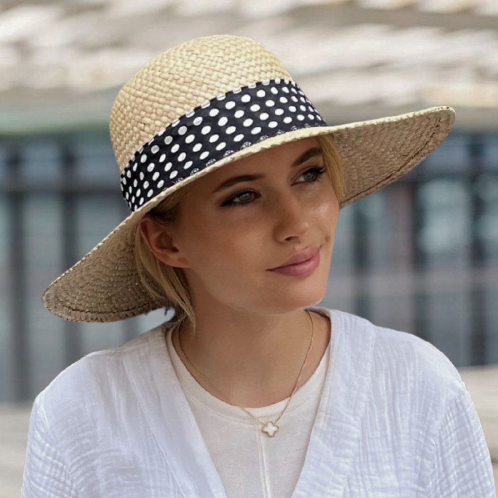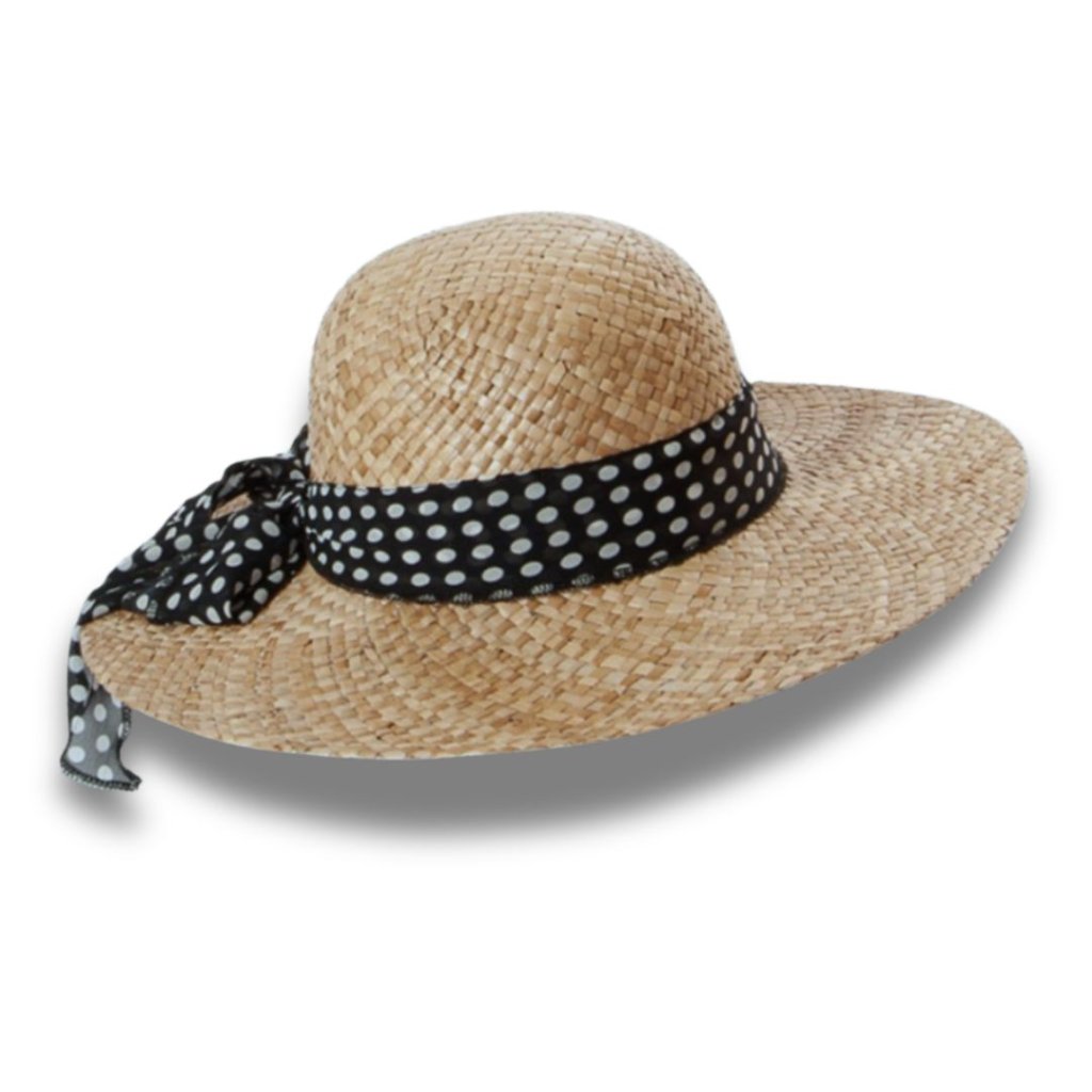 Letní dámský slaměný klobouk s puntíkatou stuhou Fa-65148