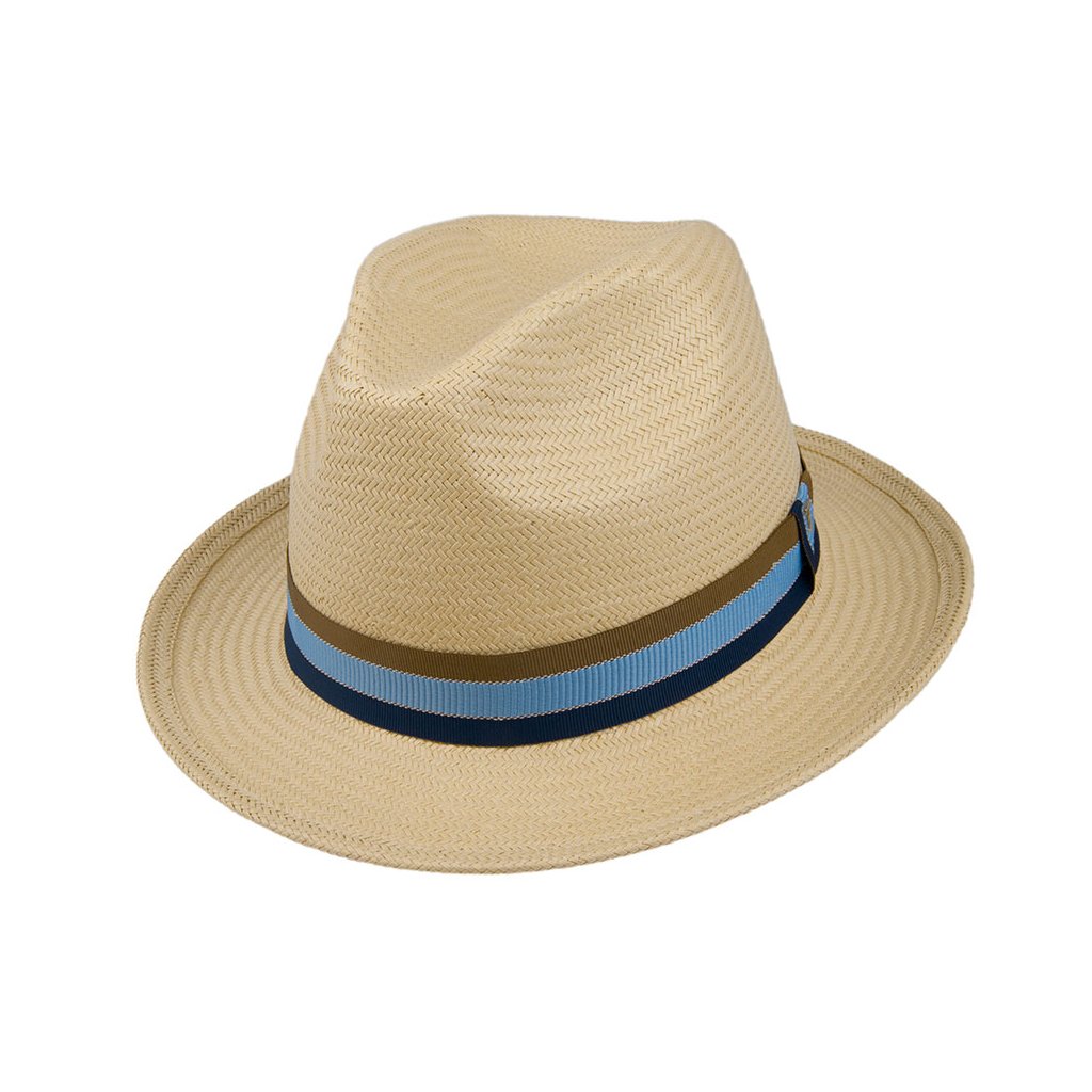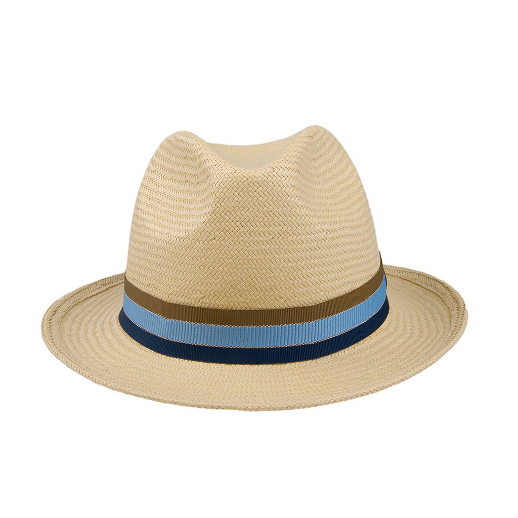 Fedoru Base Simple v krásném přírodním odstínu doplňuje blankytně modrá stuha s khaki a navy blue rámováním. Fedora má díky glazovanému papíru krásný lesk, který dá vyniknout čistým liniím klobouku. Kombinovat můžete k letnímu obleku či casual outfitu.