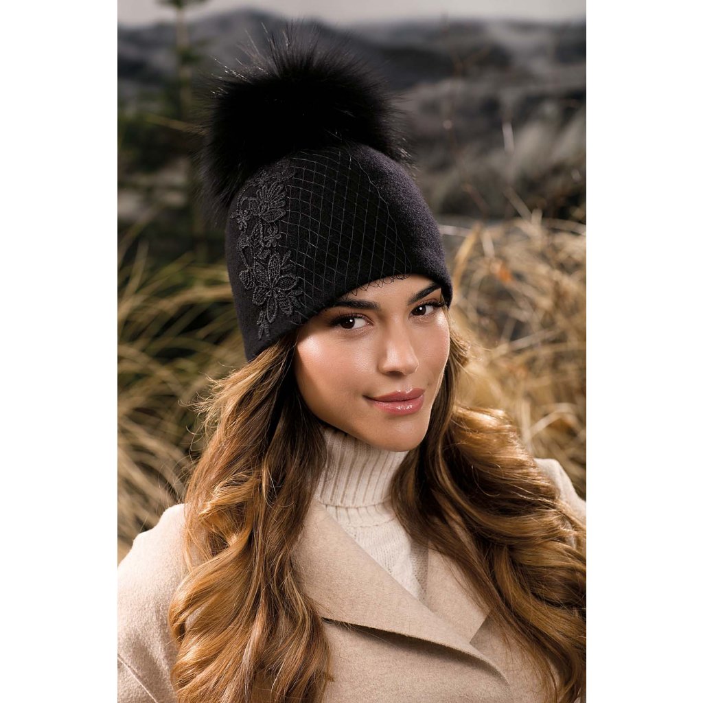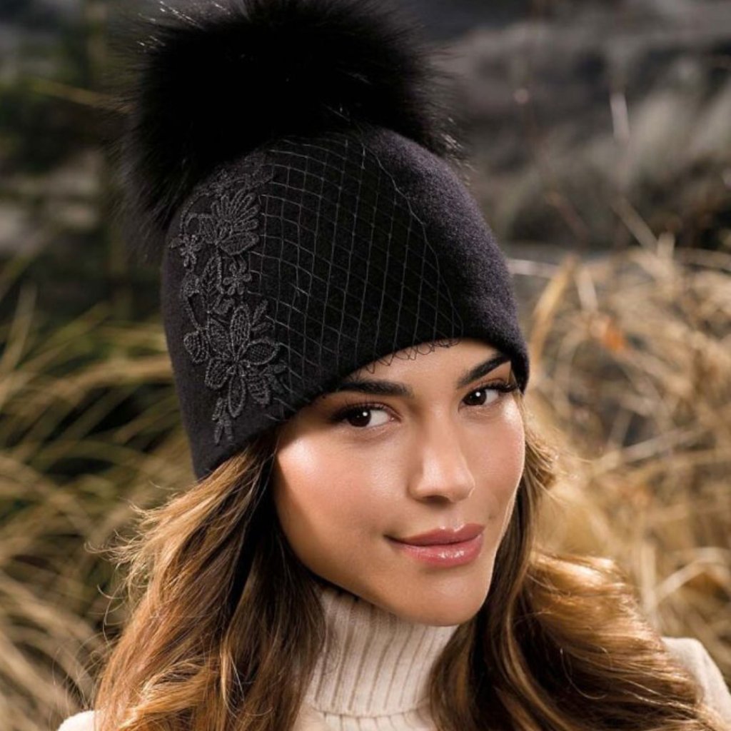 Jedinečná zimní černá čepice s velkou přírodní bambulí z nejkvalitnější vlny s certifikátem Woolmark, která se dokonale přizpůsobí každé velikosti hlavy. Vlněná černá čepice skvěle sedí a je precizně propracovaná, zdobená ručně. Elegantní charakter a půvab dodává čepici mimořádně efektní ozdoba výšivky květů a závoje. Naše zimní dámské čepice vás zahřejí a zároveň jsou velice slušivé a komfortní. Široká nabídka dámských zimních čepic je zaměřena na ženy, které oceňují kombinaci klasické elegance a nejnovějších trendů módy. U vlněných čepic se známkou Woolmark quality najdete vysokou kvalitu, originalitu a především funkčnost. Velký důraz je kladený na precizní ruční výrobu a luxusní bižuterii.