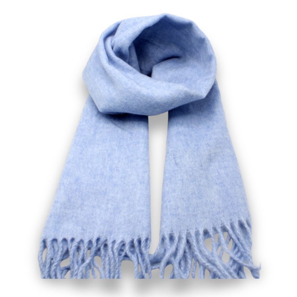 Maxi šála v nebesky modrém odstínu působí svěže, lehce a vzdušně. Tento jemný modrý tón dodá outfitu klid a harmonii a snadno se kombinuje s neutrálními barvami – od bílé a šedé po béžovou či světle hnědou.
