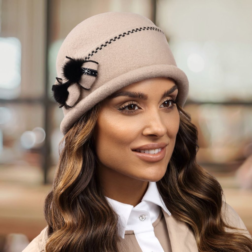 Fotografie na modelce je stejný klobouk, ale v béžové variantě.