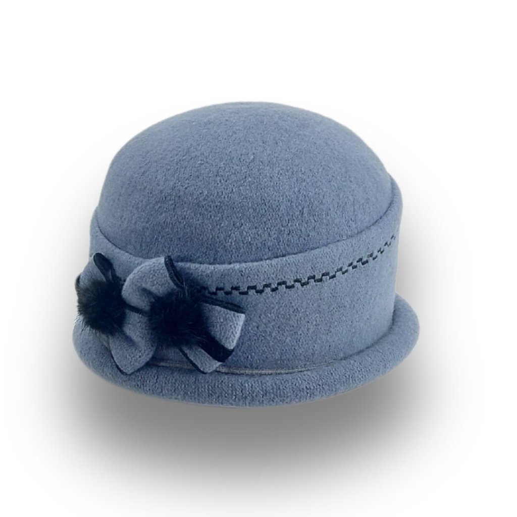 Modrá zimní čepice z nejkvalitnější 100% vlny s certifikátem Woolmark, která se dokonale přizpůsobí každé velikosti hlavy. Vlněná čepice skvěle sedí a je precizně propracovaná, zdobená ručně vlněnou ozdobou s přírodní kožešinkou. Zimní klobouk má kulatý polstrovaný lem a drží skvěle tvar. Naše zimní dámské čepice vás zahřejí a zároveň jsou velice slušivé a komfortní. Široká nabídka dámských zimních čepic je zaměřena na ženy, které oceňují kombinaci klasické elegance a nejnovějších trendů módy. U vlněných čepic se známkou Woolmark quality najdete vysokou kvalitu, originalitu a především funkčnost. Velký důraz je kladený na precizní ruční výrobu a luxusní bižuterii.