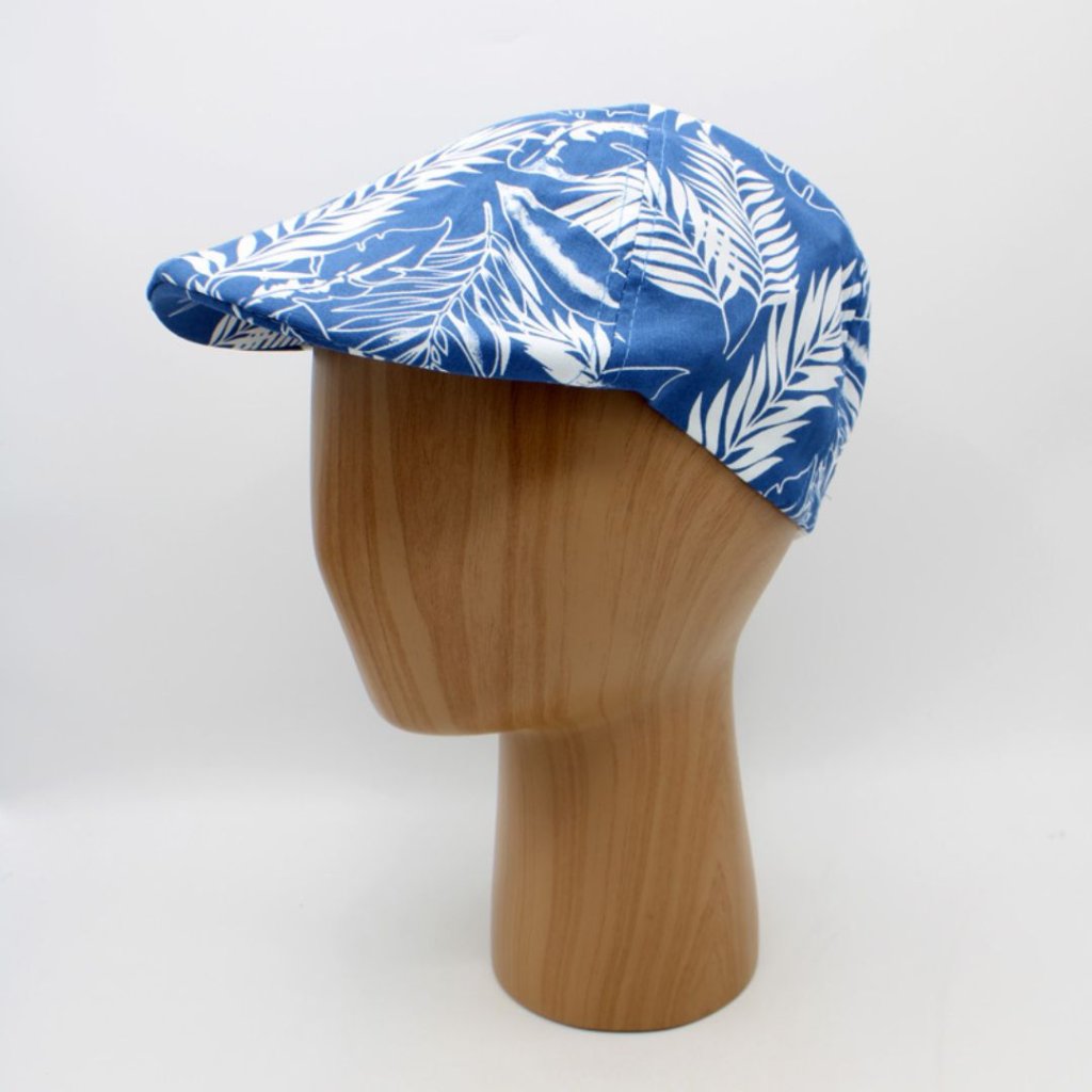 Lehká pánská letní modrá bekovka s tropickým vzorem. Stylový a prodyšný doplněk ideální pro horké dny, město i dovolenou.