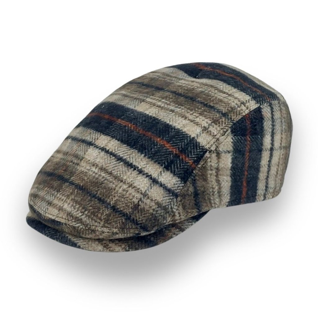 Pánská zimní bekovka s klapkami na uši – kostka - béžovo - černá K710-36