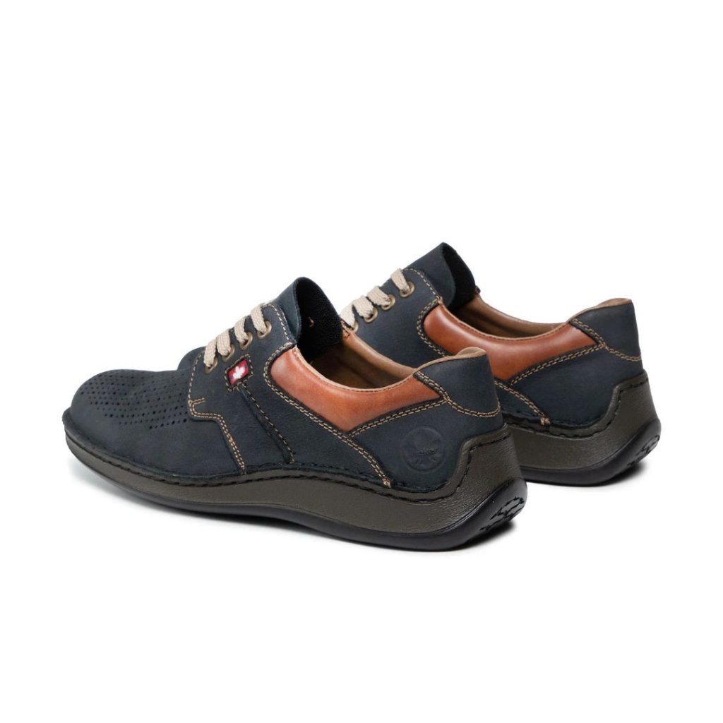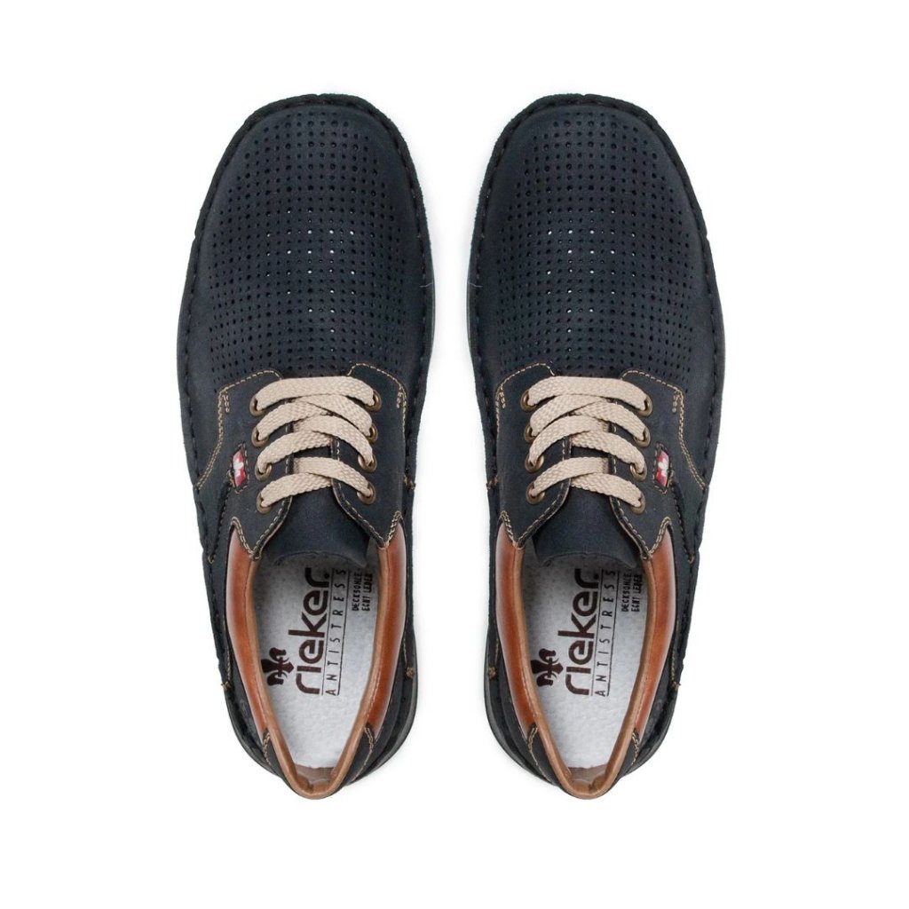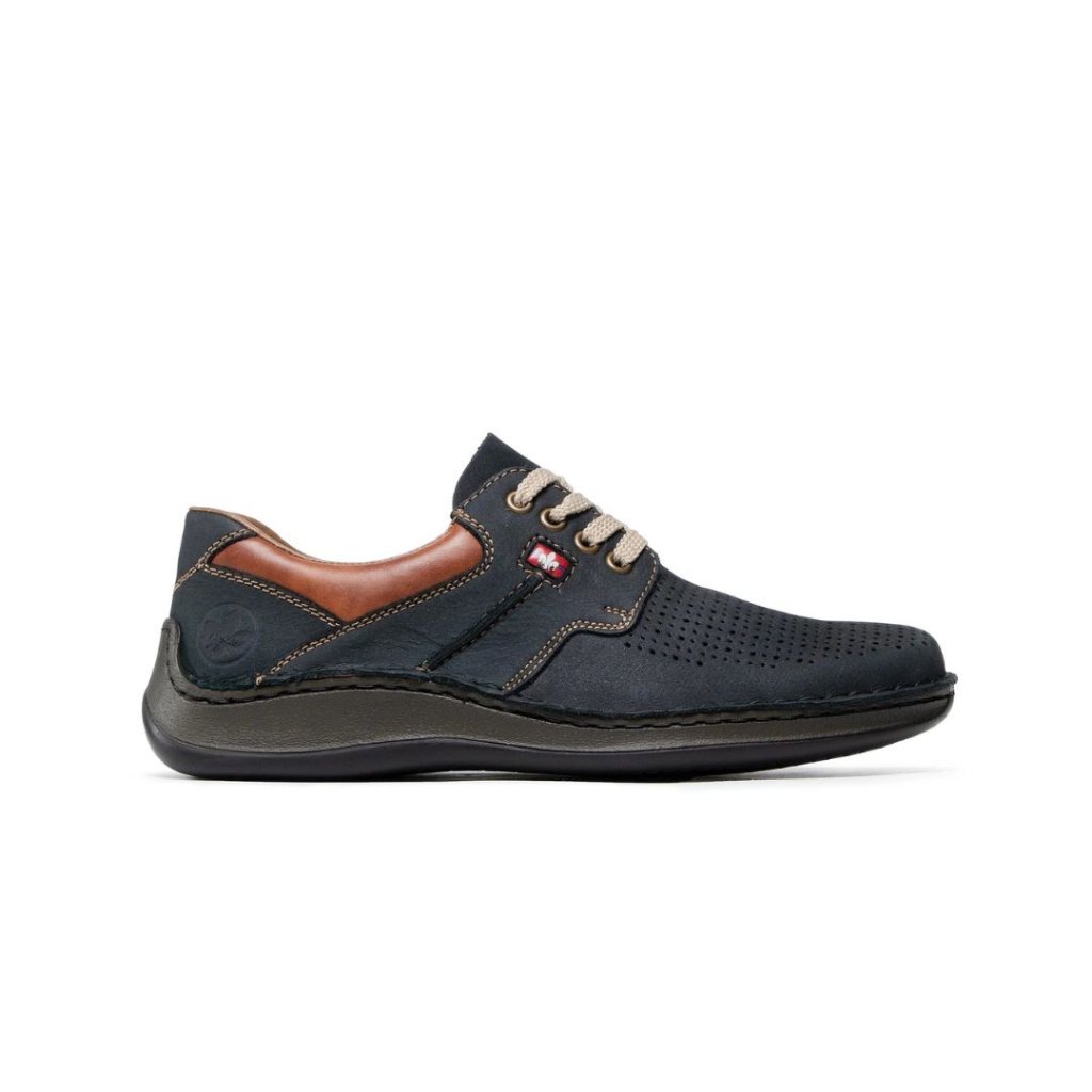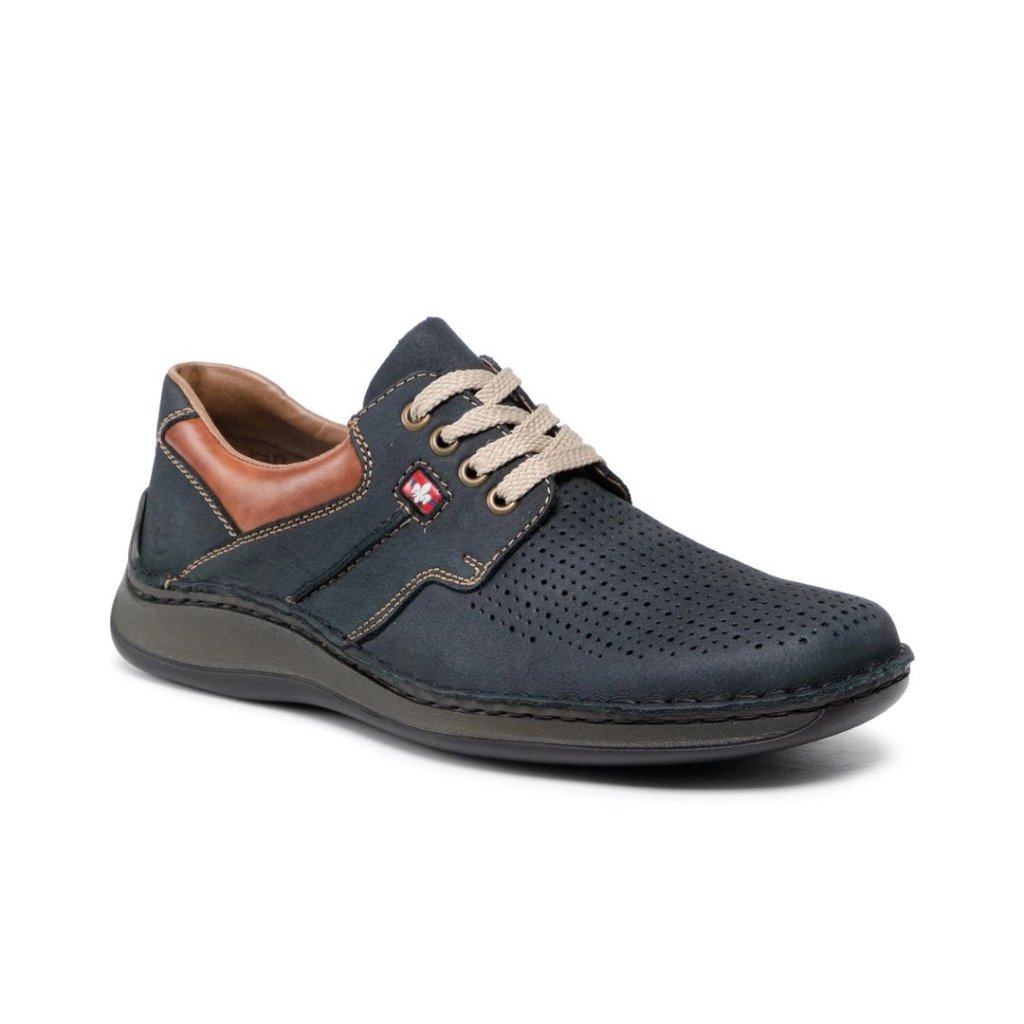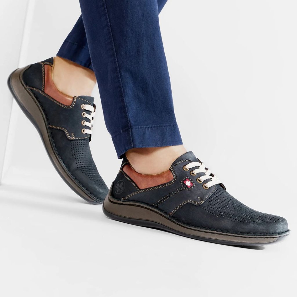 Pánské perforované polobotky Rieker v elegantní tmavě modré barvě spojují stylový vzhled s maximálním pohodlím. Svršek z pravé kůže je doplněn jemným děrováním, které zajišťuje lepší prodyšnost jsou ideální volba na teplejší jarní a letní dny.