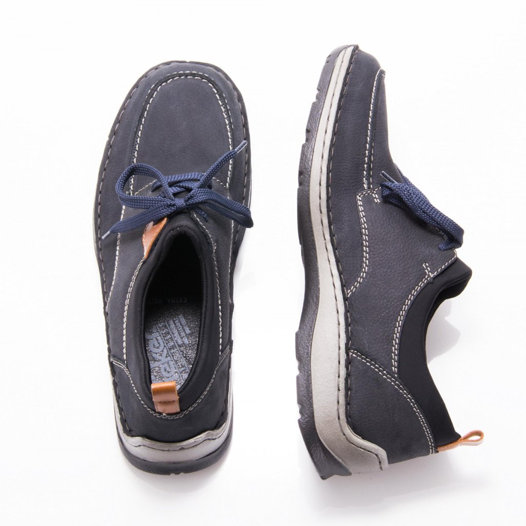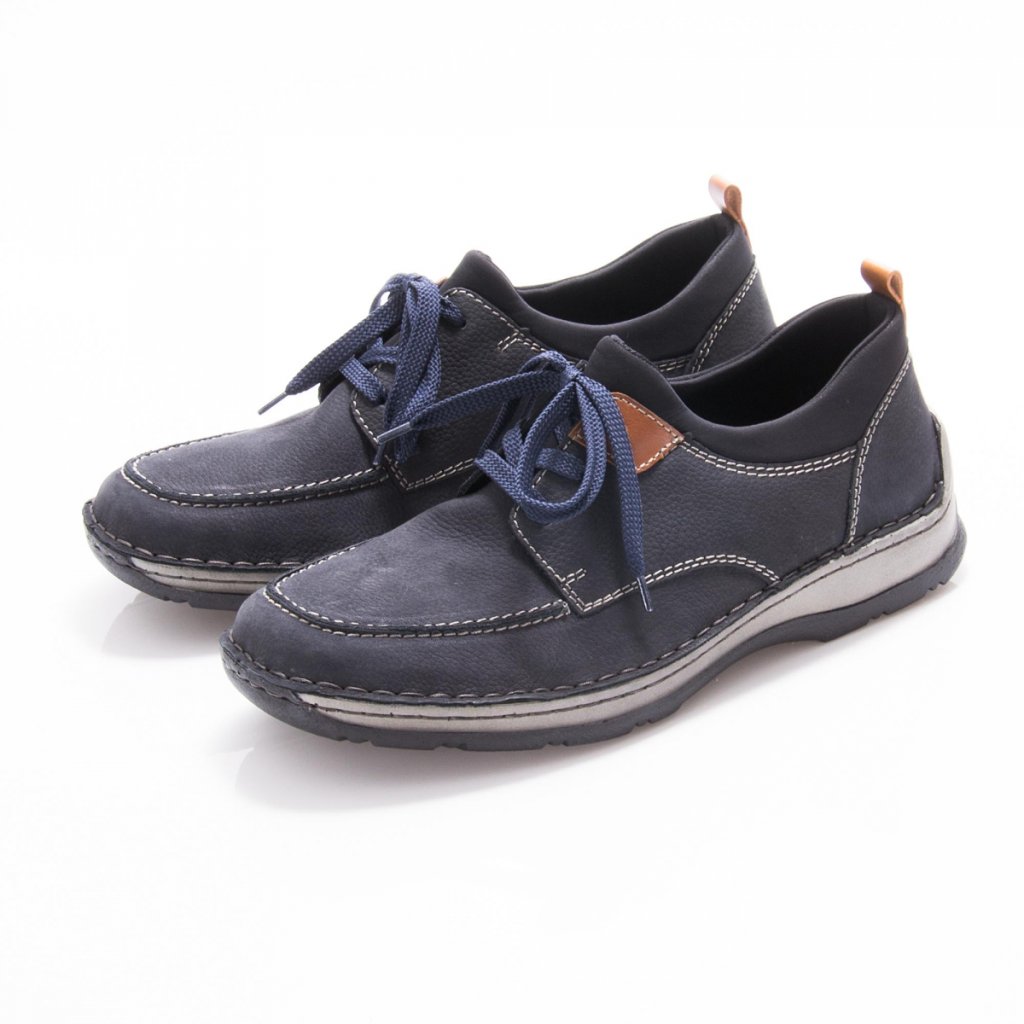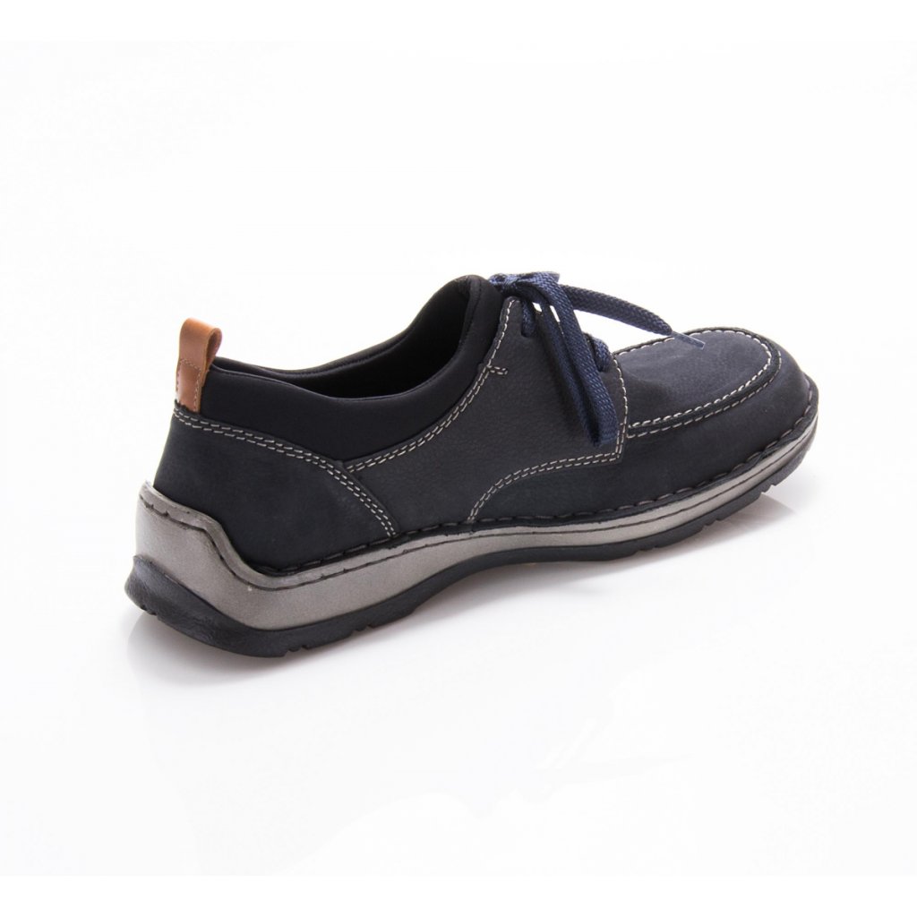 Elegantní kožené polobotky Rieker v modré barvě jsou skvělou volbou pro každého muže, který hledá pohodlí bez kompromisů ve stylu. Moderní design doplněný decentními detaily zajišťuje, že tyto boty vynosíte nejen do kanceláře, ale i na formálnější události nebo volnočasové schůzky.