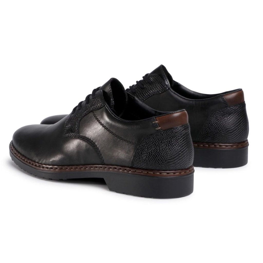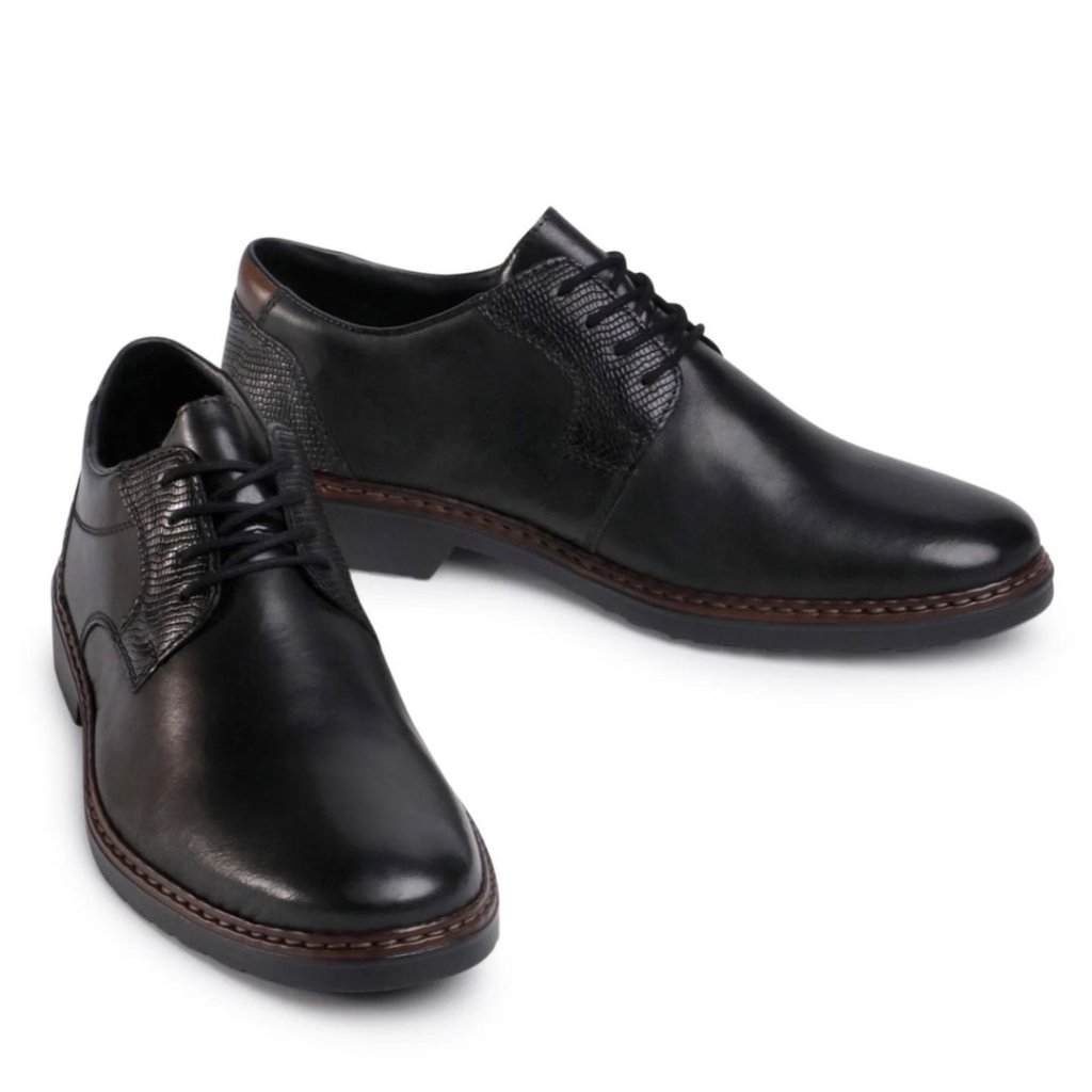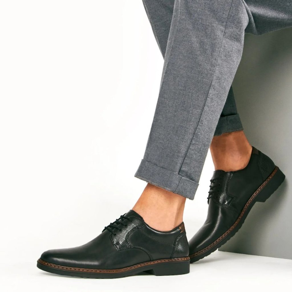 Elegantní a pohodlné pánské polobotky RIEKER jsou ideální volbou pro každodenní nošení i formálnější příležitosti. Klasické šněrování zajišťuje pevné uchycení, kulatá špička poskytuje dostatek prostoru pro prsty a plochá podešev s 3cm podpatkem se postará o komfortní krok. Lehká konstrukce (pouze 328 g na botu) a celková výška 11 cm dělají z těchto bot skvělého parťáka do práce i na procházku. Kvalitní zpracování značky RIEKER vás nezklame.