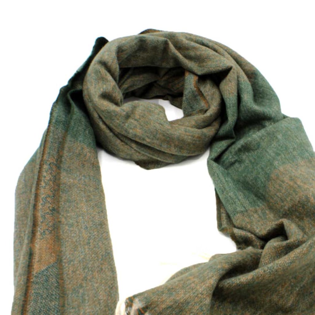 Zimní šála je velmi příjemná a heboučká, a díky speciální úpravě působí na dotek kašmírovým pocitem - Casherme Sensation. Zeleno-hnědý vzorovaný šál je dostatečně velký a umožňuje mnoho způsobů nošení.