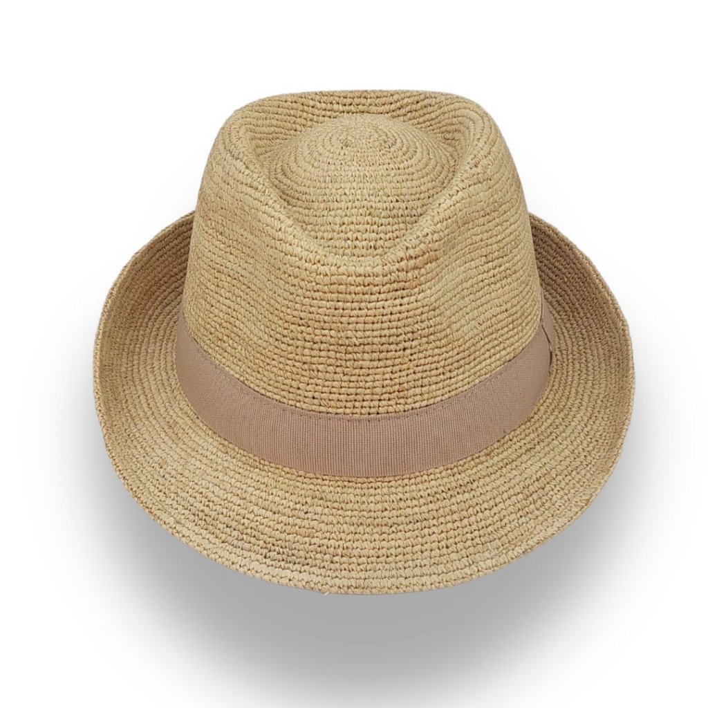 Slaměný letní klobouk Trilby 100% Rafia- ručně háčkovaný letní klobouk - béžový P-970-241