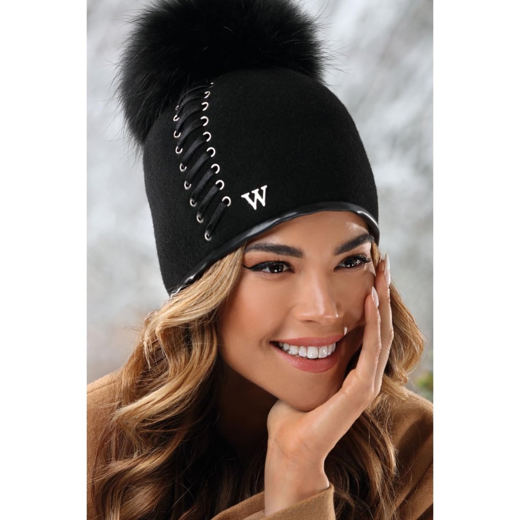 Černá zimní čepice s bambulí z nejkvalitnější vlny s certifikátem Woolmark, která se dokonale přizpůsobí každé velikosti hlavy. Vlněná černá čepice má sportovně elegantní charekter, který jí dodává efektní prošítí eko kůží. Dámská čepice má měkkou a hřejivou podšívku a šňůrku v lemu pro pohodlnou regulaci velikosti.