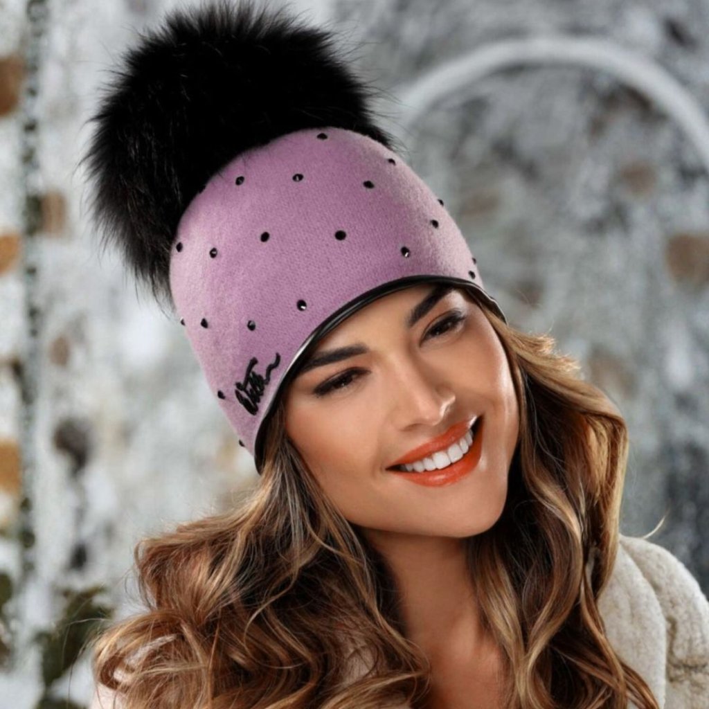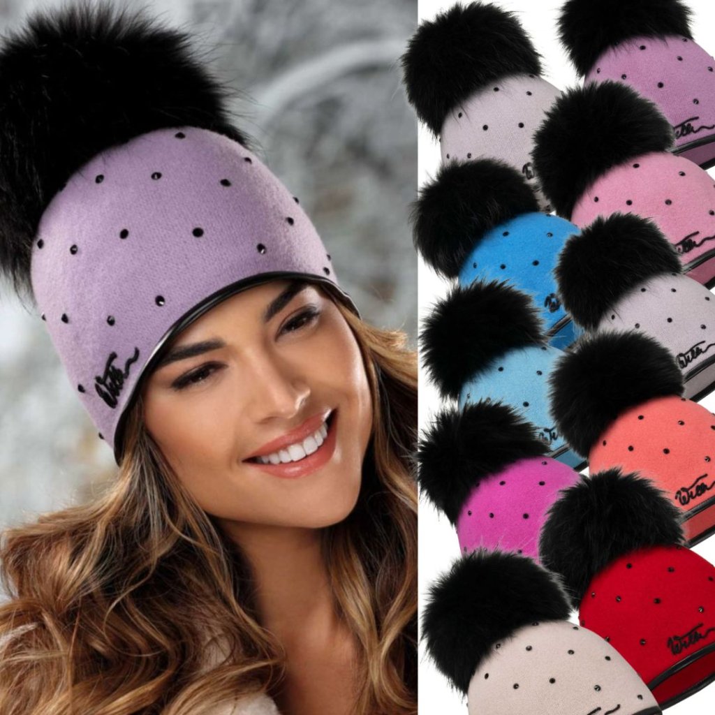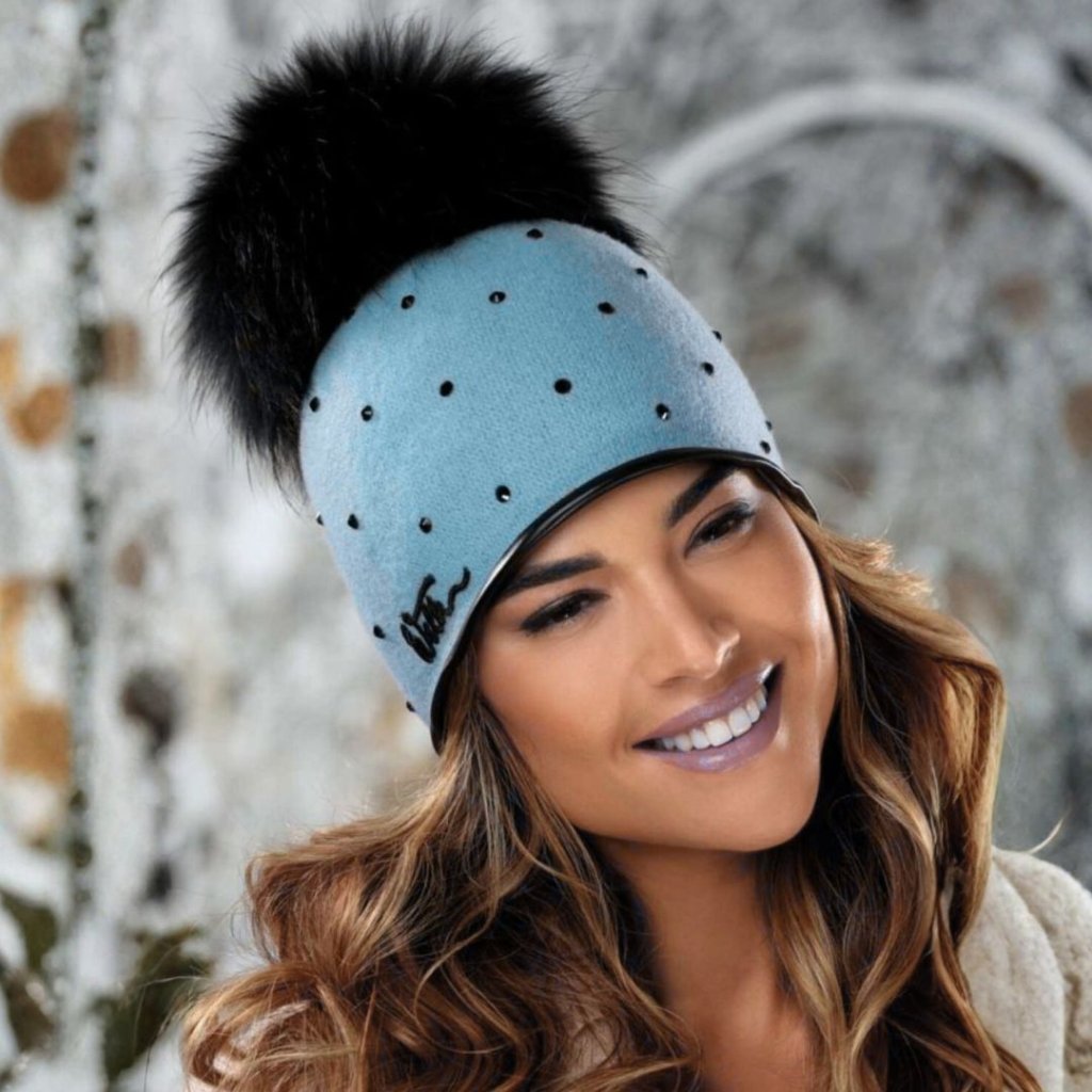 Zimní čepice z hřejivé a měkké certifikované vlny Woolmark, kterou nabízíme v široké nabídce úžasných barev. Vlněná čepice, která se dokonale přizpůsobí každé velikosti hlavy. Jedinečný charakter dodává dámské vlněné čepici hravá aplikace v podobě černých puntíků z broušených černých krystalů. Celek čepice doplňuje přírodní kožešinová bambulka. Dámská čepice má nastavitelné šňůrky v lemu pro snadnou úpravu velikosti. Čepici nabízíme v několika krásných barevných variantách.